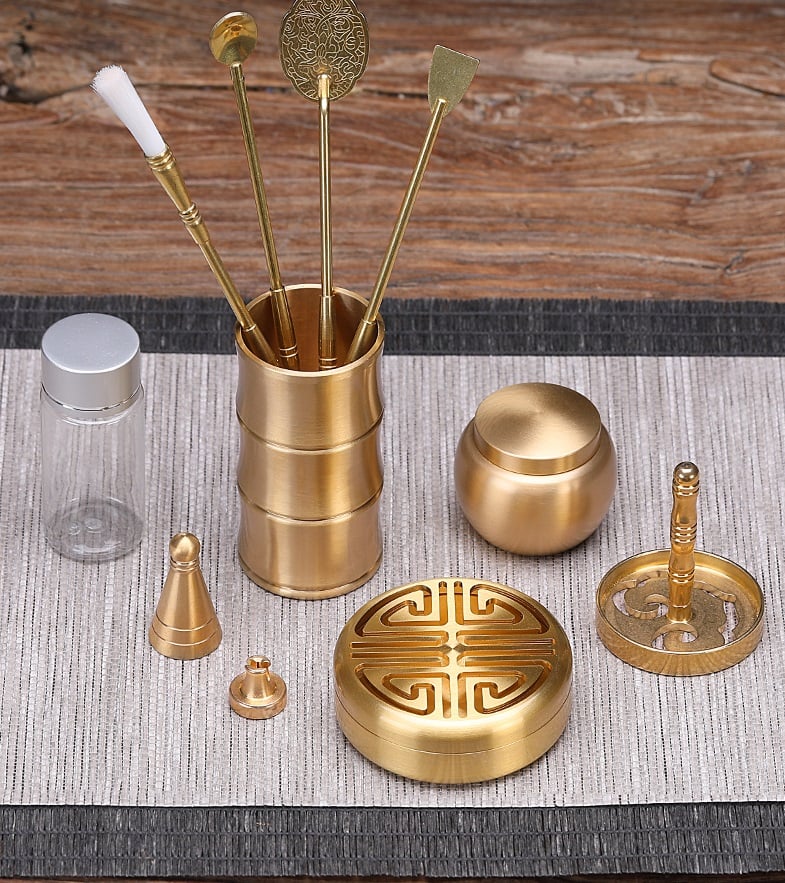 Bộ Dụng Cụ Đốt Trầm Full - Tạo Hình, Ép Trầm Nụ - Lư Hình Chữ Thọ, Khuôn Hình Như Ý (Vạn sự như ý, tốt lành)