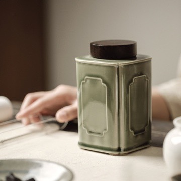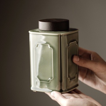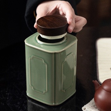 𝒉𝒖̃ 𝒕𝒓𝒂̀ 𝒕𝒉𝒖 𝒉𝒂̉𝒊 đ𝒖̛𝒐̛̀𝒏𝒈 𝒔𝒖̛́ 𝑳𝒐𝒏𝒈 𝑻𝒖𝒚𝒆̂̀𝒏 Hũ trà, bình đựng trà là đồ dùng không thể thiếu trên bàn trà. Quan trọng hơn cả ấm, hũ trà là nơi nâng niu hương vị cho loại trà mà bạn yêu thích. Hơn thế nó còn thể hiện sự tinh tế và cá tính riêng của trà nhân Lấy cảm hứng từ loài hoa Thu Hải Đường, hũ có thiết kế tứ phương nhưng ở thể hoa 4 cánh giống như loài hoa này đang bắt đầu chớm nở. Cấu trúc này được thể hiện ở cả hình dáng và họa tiết nổi ở mỗi mặt. Cũng nhờ đó mà dễ cầm không bị trơn tay. Nắp hũ bằng gỗ mun- một loại gỗ bền và quý hiếm, bên trong nắp là lớp mút mềm tạo độ khít tuyệt đối để bảo quản trà Celadon – Men ngọc là một từ đồng nghĩa với “greenware” của Long Tuyền. Bên cạnh màu xanh và trắng, đây chắc chắc là một trong những loại đồ sứ Trung Hoa tốt nhất. Nó có thể được tìm thấy ở các quốc gia dọc theo con đường tơ lụa trên các đường biển cổ xưa nối liền Đông Nam Á, Nam/Tây Á, Trung Đông và Đông Phi. Số lượng đồ sứ men ngọc Long Tuyền được xuất khẩu trong thời đại Tống và Nguyên là rất lớn.